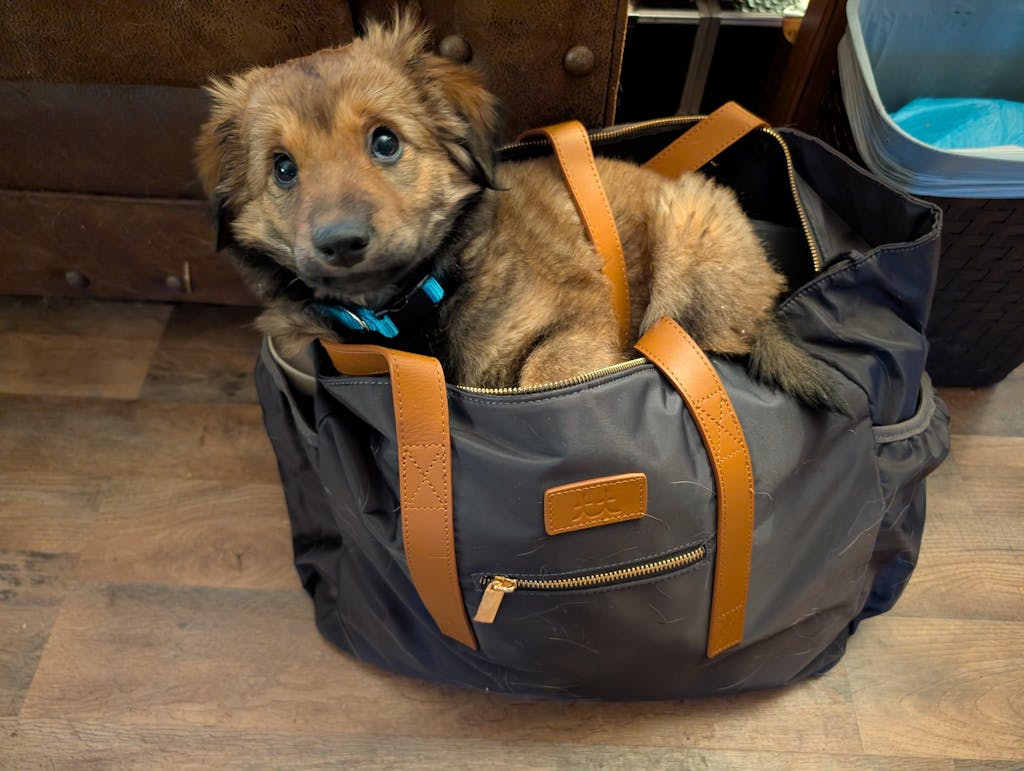 Fits my MacBook Air, my iPad, five classes worth of finals, my obsession with markers, my keys, my wallet, my lanyard, my breakfast, my lunch, my coffee, my water bottle, and my puppy.